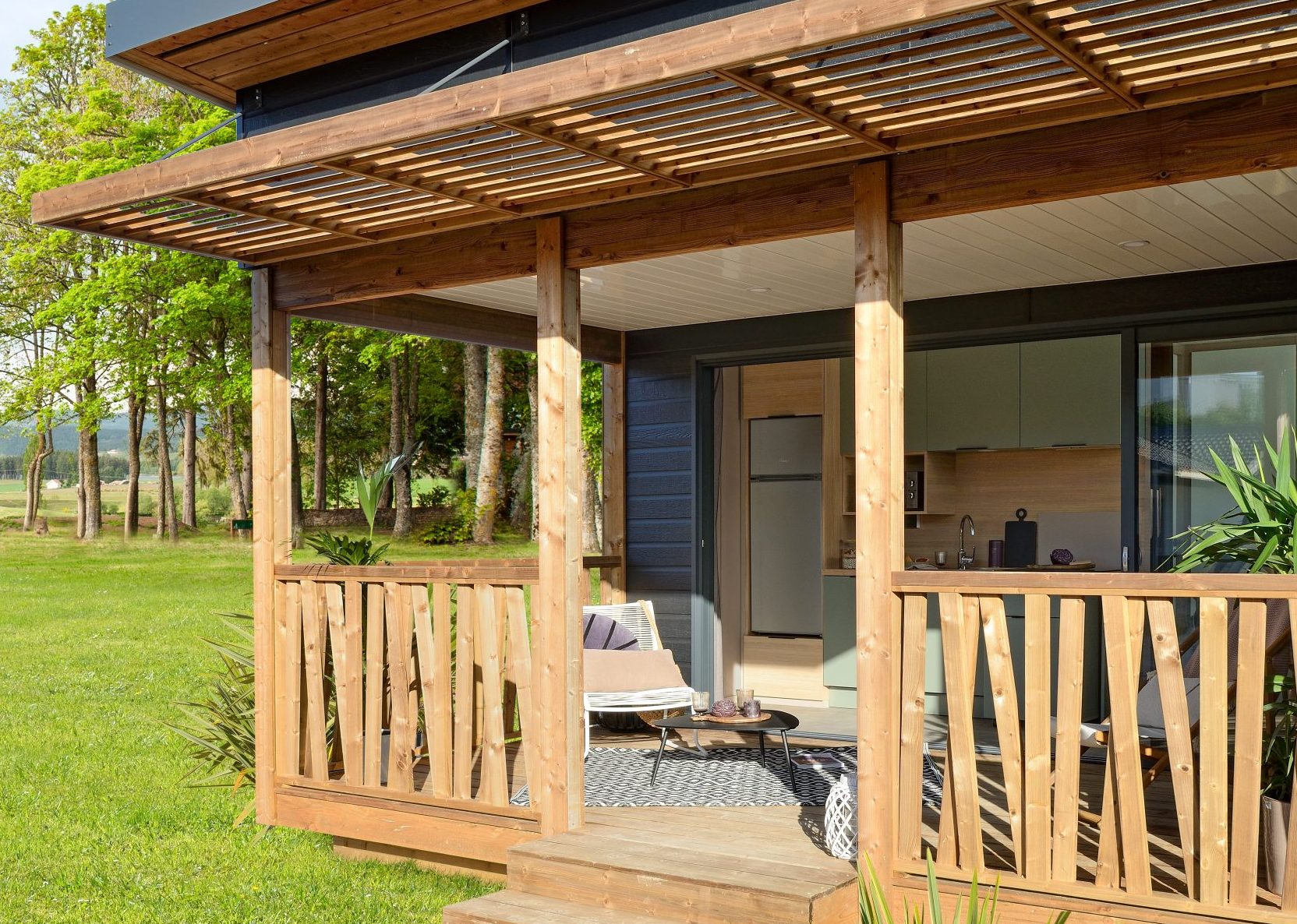 Robustes, les chalets de loisirs Fabre brillent pour leur solidité mais aussi pour l’accent mis sur le choix des matériaux de qualité et sur le design. Véritable lieu de sérénité, la chaleur du bois provoque un profond sentiment de bien-être et aspire à la convivialité et au partage. Les grandes ouvertures des chalets Fabre contrastent avec la sobriété et la pureté du bois.