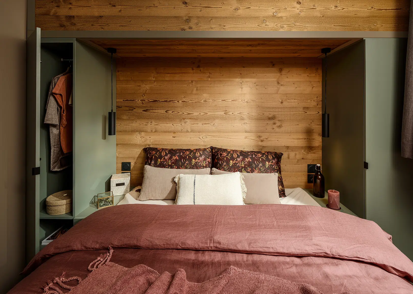 Les chambres sont douces et douillettes pour des nuits reposantes. L’ambiance des chambres repose sur des éléments, des accessoires très pratiques : patères, chevets, tête de lit, suspension …