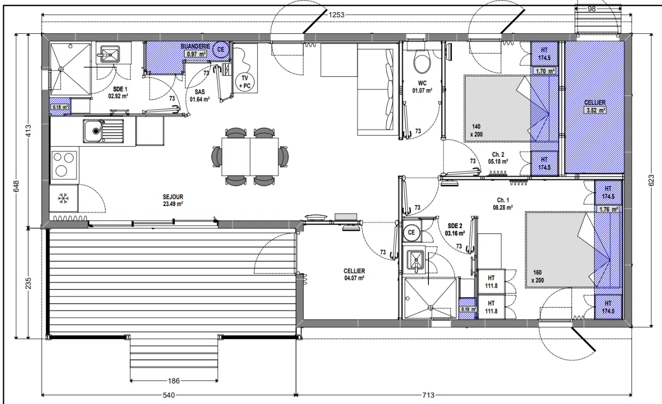 La cuisine donne un accès direct à la terrasse. Le salon est un espace cosy et convivial. 2 salles d’eau maximisent le confort et l’autonomie de tous.