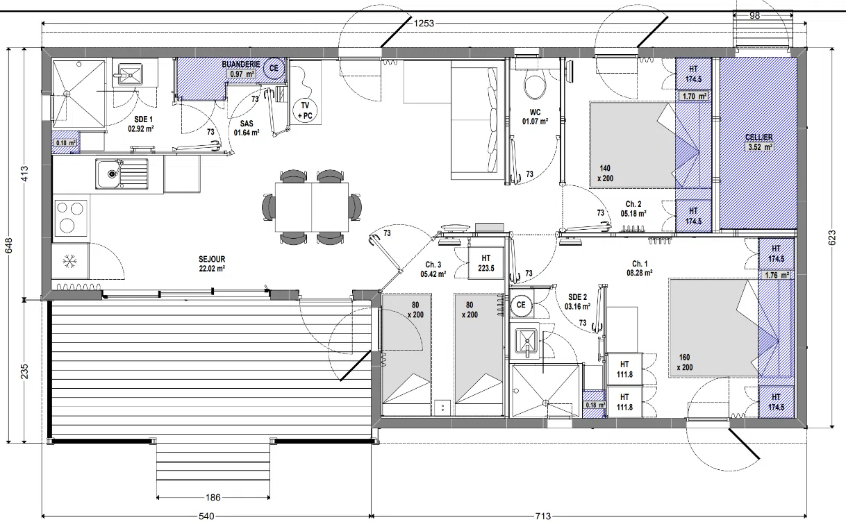 La cuisine donne un accès direct à la terrasse. Le salon est un espace cosy et convivial. 2 salles d’eau maximisent le confort et l’autonomie de tous.