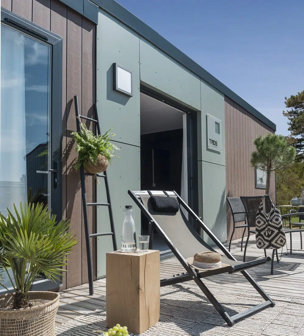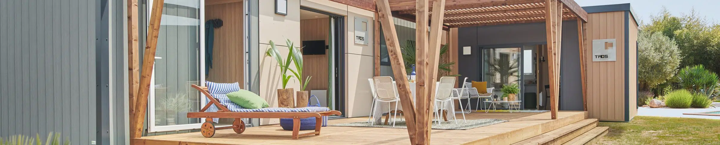 Un mobil-home ne serait pas considéré comme luxueux ou premium sans terrasse. C’est pourquoi Sunshine Habitat a toutes les cordes à son arc, ici : Sunshine Outdoor.