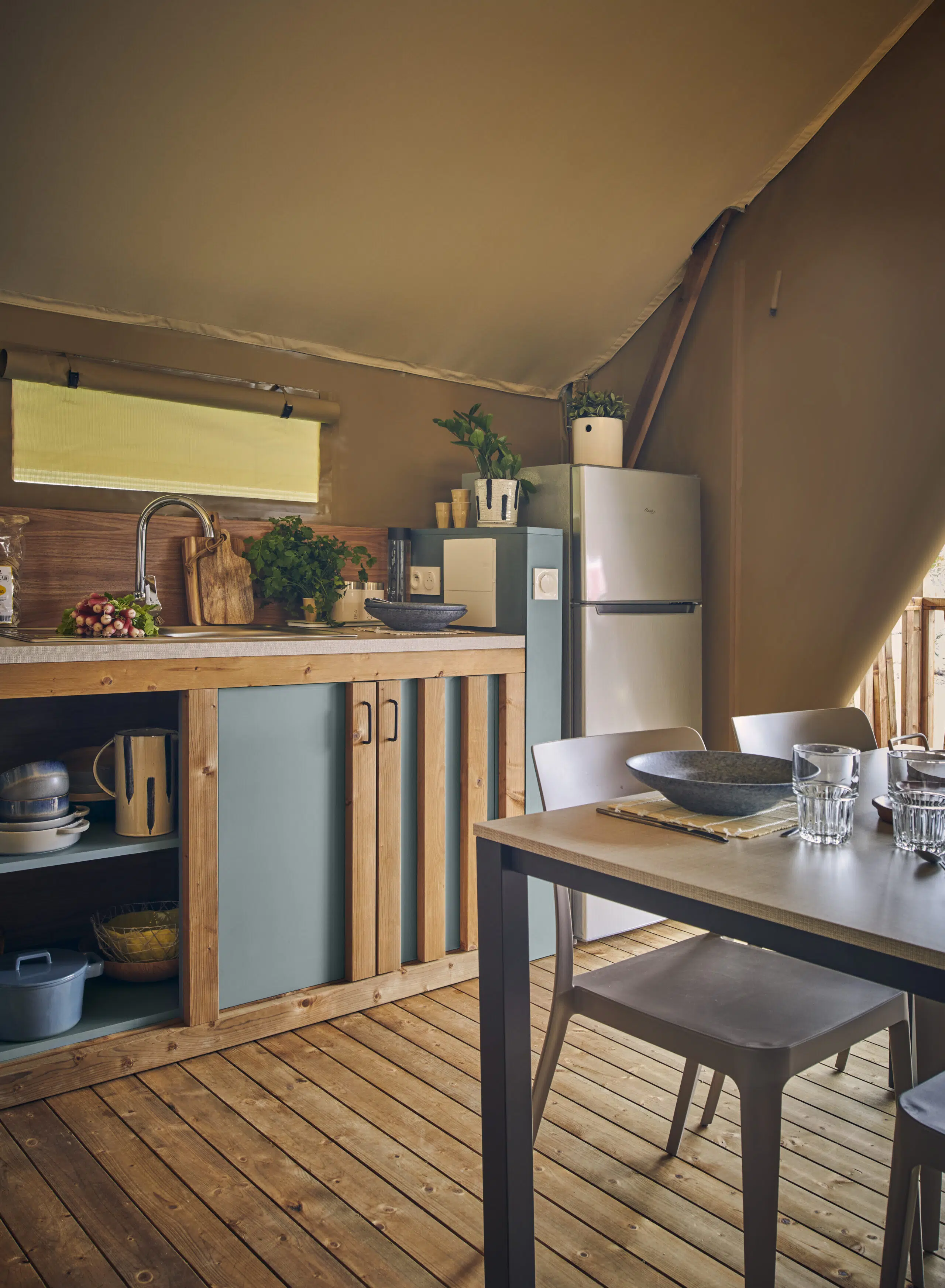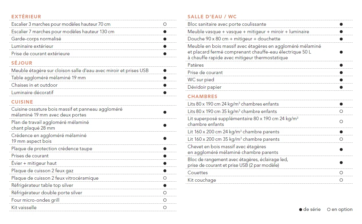 La cuisine ouverte donne sur la terrasse, la salle d’eau-WC est spacieuse et les chambres sont confortables avec du rangement.