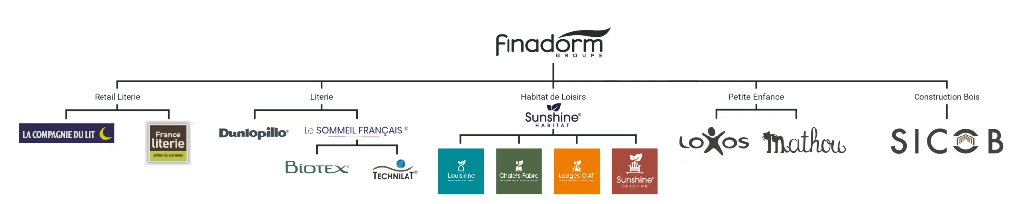 La filiale Habitat de loisirs du Groupe Finadorm naît avec la création de Sunshine Habitat en 2018 qui réunit les 4 marques filles de la branche Habitat de loisirs : Mobil-homes Louisiane, Chalets Fabre, Lodges CIAT et Sunshine Outdoor. Ce regroupement permet à Sunshine Habitat d’être la première et l’unique marque à proposer, sur le marché de l’Hôtellerie de Plein Air, les 3 types d’hébergements locatifs et résidentiels ainsi qu'une offre de terrasses associée. L’offre globale Sunshine Habitat est unique tant en termes de complémentarité et de qualité des produits que de profondeur des gammes.